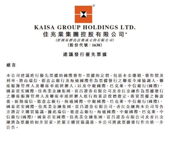 佳兆業集團有限公司kaisa holdings limited 成立于1999年07月16日公司註冊編號為0682197屬於香港私人股份有限公司. 更新日期2019-07-05 香港 1604761 Live. 佳兆業金融集團 指 佳兆業金融集團有限公司 上市規則 指 聯交所證券上市規則 原有票據 指 本公司於二零二零年一月二十三日發行的二零 二五年到期的300百萬美元995優先票據 中國 指 中華人民共和國就本公告而言不包括香港.